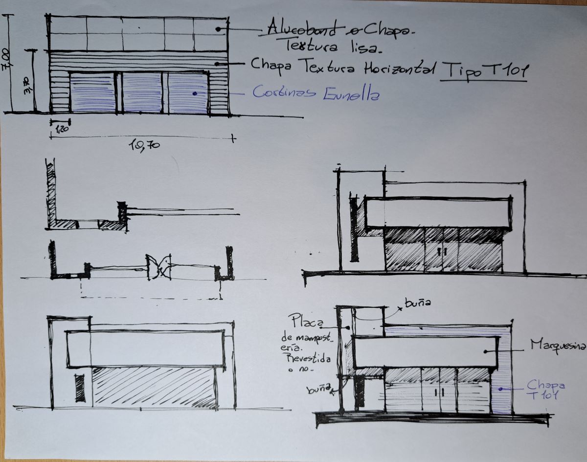 Siempre guidados por la simplicidad, comenzamos la búsqueda estética y estructural con la premisa de resolver mediante sus elementos principales la forma y el diseño de fachada del proyecto.